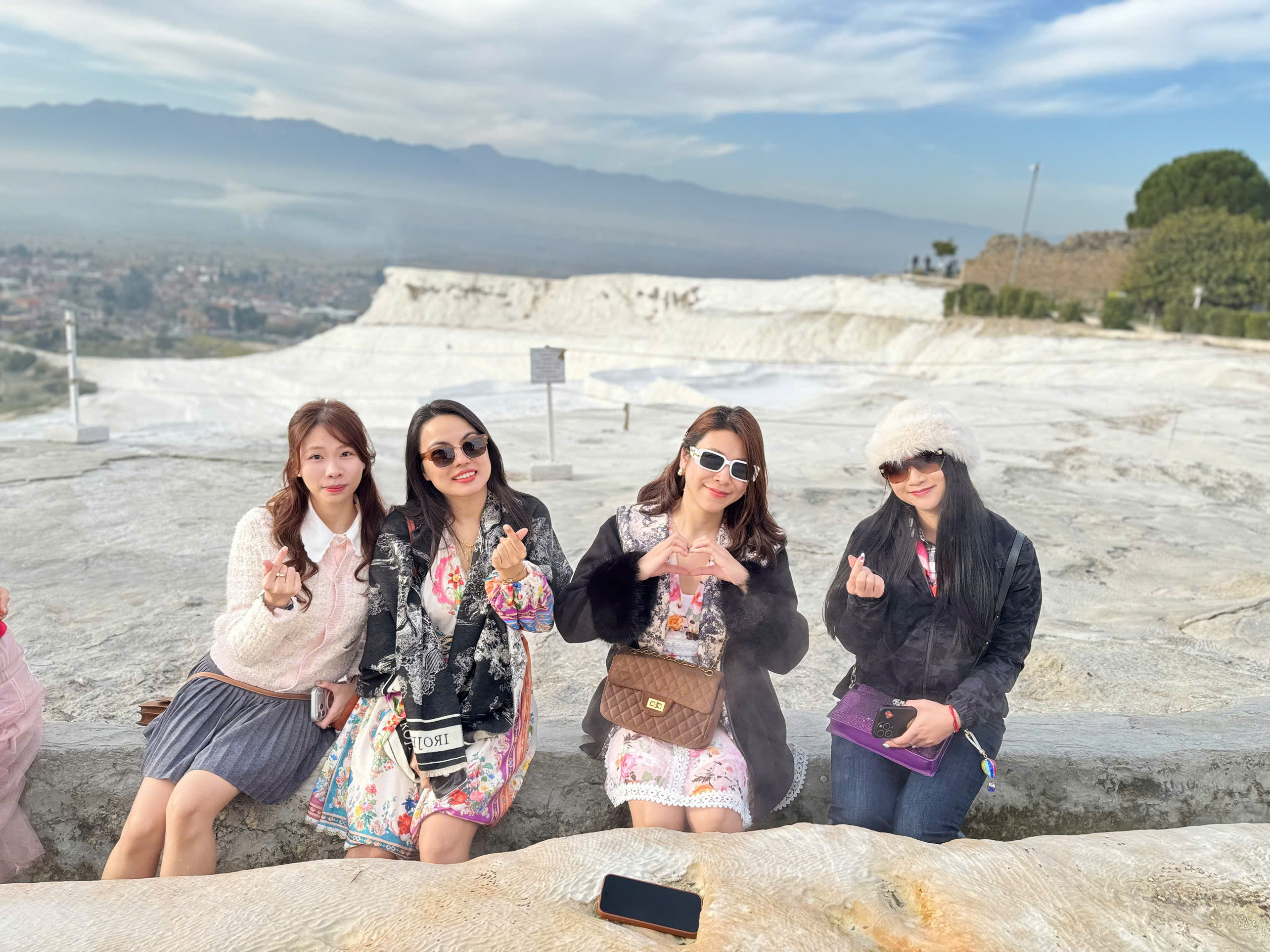 Tiếp tục đến với Pamukkale (~400km, ~5 giờ di chuyển) – Đây là một điểm đến hấp dẫn nhất nhì Thổ Nhĩ Kỳ bởi vẻ đẹp khó tin chỉ xuất hiện trong những bộ phim khoa học viễn tưởng của nó. Nếu chỉ nhìn trên ảnh hay những thước phim từ trên cao, người ta dễ nhầm lẫn đây là một núi tuyết khổng lồ nhưng thật ra đó chính là một vùng núi đá vôi canxi cacbonic được tích tụ hàng nghìn năm với hình dáng như những hồ nước xếp thành từng tầng được tạo thành bởi quá trình biến đổi. Nước trong những “hồ bông” này là nước khoáng tự nhiên được hình thành từ mạch khoáng ngầm với màu xanh da trời và chứa nhiều khoáng chất có lợi cho sức khỏe và có thể hỗ trợ chữa bệnh. Ở Pamukkale có đến 17 suối nước nóng với nhiệt độ từ 35 – 100 độ nên từ lâu người ta đã biết tận dụng để mở các dịch vụ spa, nghỉ dưỡng để phục vụ du khách.