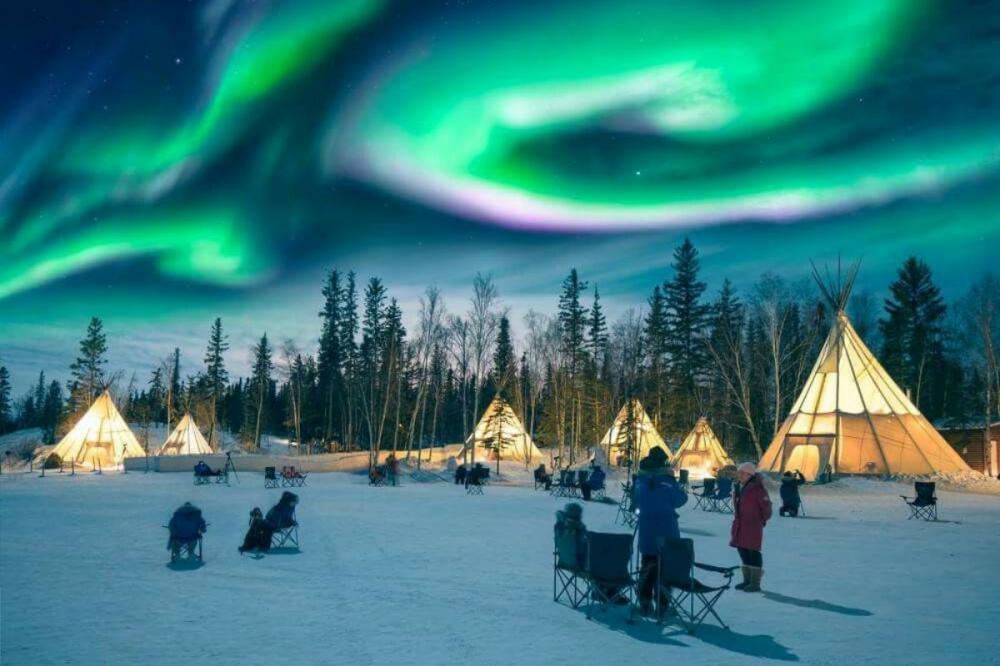 Địa điểm săn cực quang: Làng văn hóa của người thổ dân Dene (lều Aboriginal Teepees) để ngắm Bắc cực quang, hòa mình vào nền văn hóa lâu đời nơi đây.