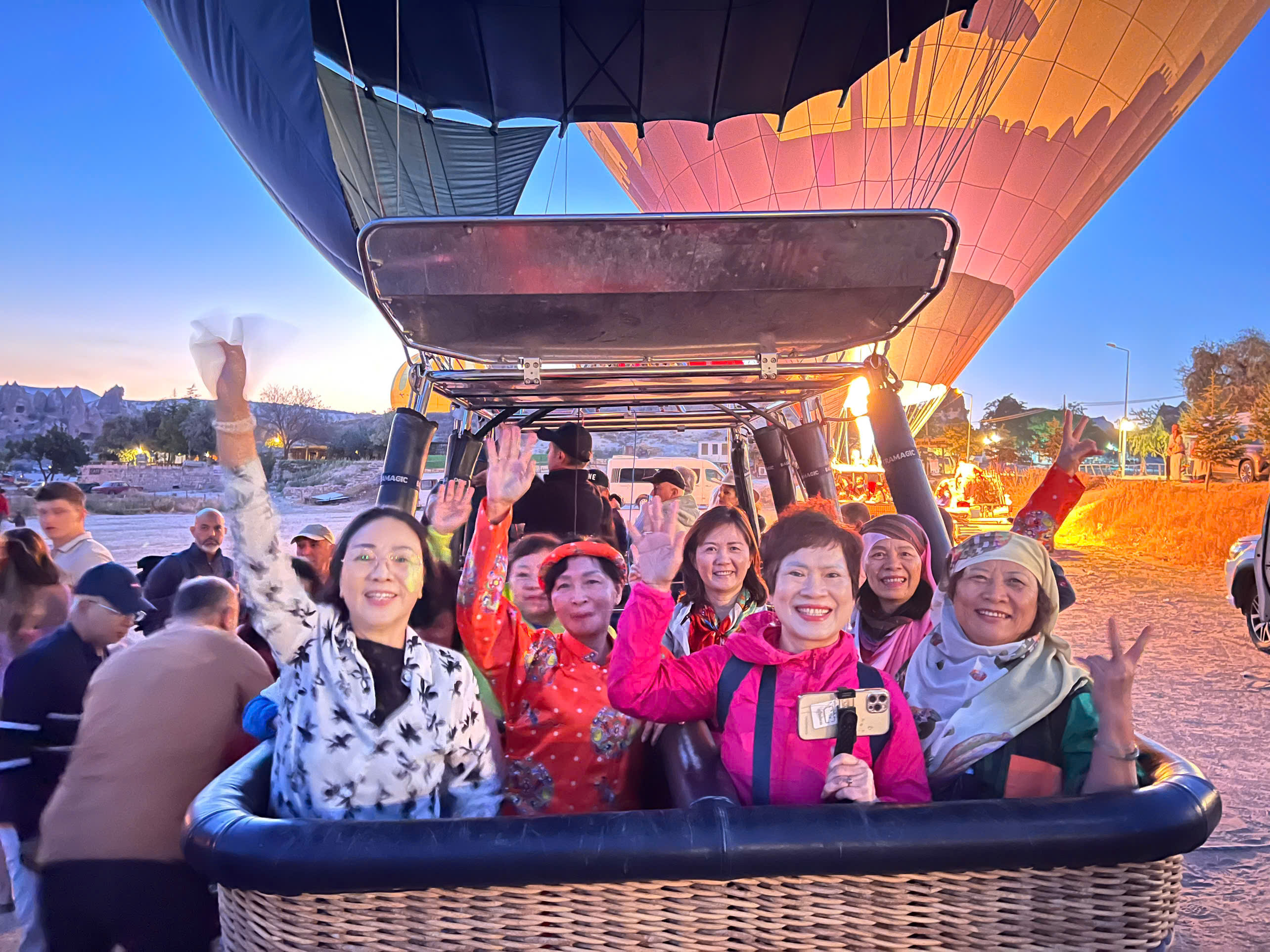 🚩 Option 1: Bay khinh khí cầu đón bình minh: Quý khách sẽ có cơ hội chiêm ngưỡng toàn cảnh Cappadocia từ trên cao trong khoảnh khắc bình minh rực rỡ, khi mặt trời từ từ ló rạng giữa hàng trăm quả bóng bay sặc sỡ. Sau khi hạ cánh, quý khách sẽ được tham gia một buổi tiệc nhẹ ấm cúng với bánh ngọt và rượu champagne, và nhận chứng nhận (certificate) như một món quà lưu niệm đánh dấu hành trình đặc biệt này.